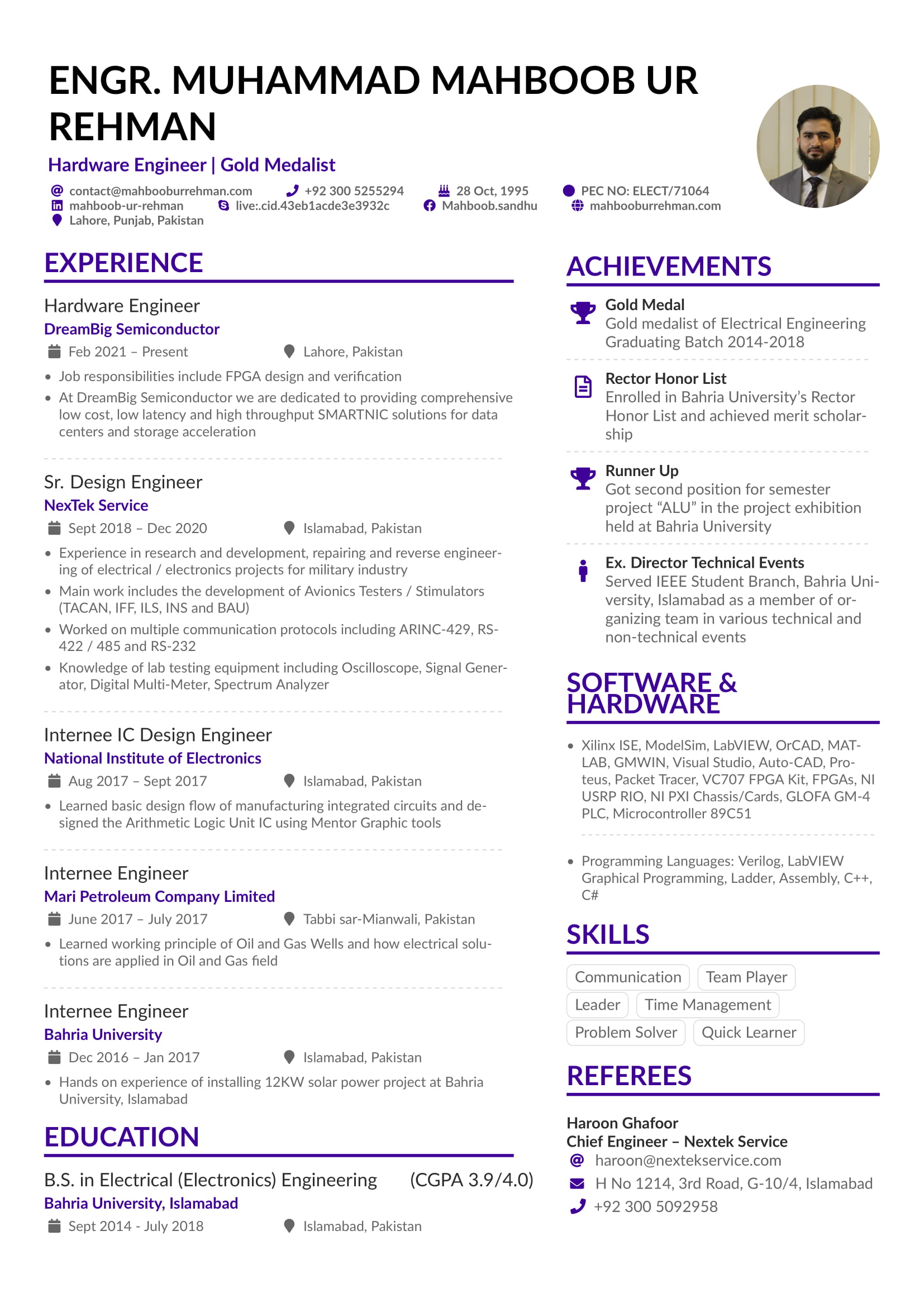I am an engineering professional and holds a bachelor’s degree in Electrical Engineering with specialization in Electronics. Currently serving at DreamBig Semiconductor as Hardware Engineer. Job responsibilities include ASIC design and verification of 800G SmartNIC.